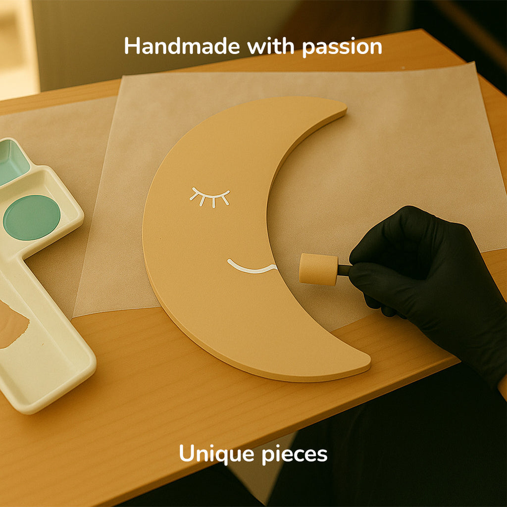 مصابيح Babynotte مصنوعة من خشب عالي الجودة، ومرسومة يدويًا بدقة في ورشنا باستخدام طلاء مائي مصمم خصيصًا ليكون لطيفًا على البشرة الحساسة.